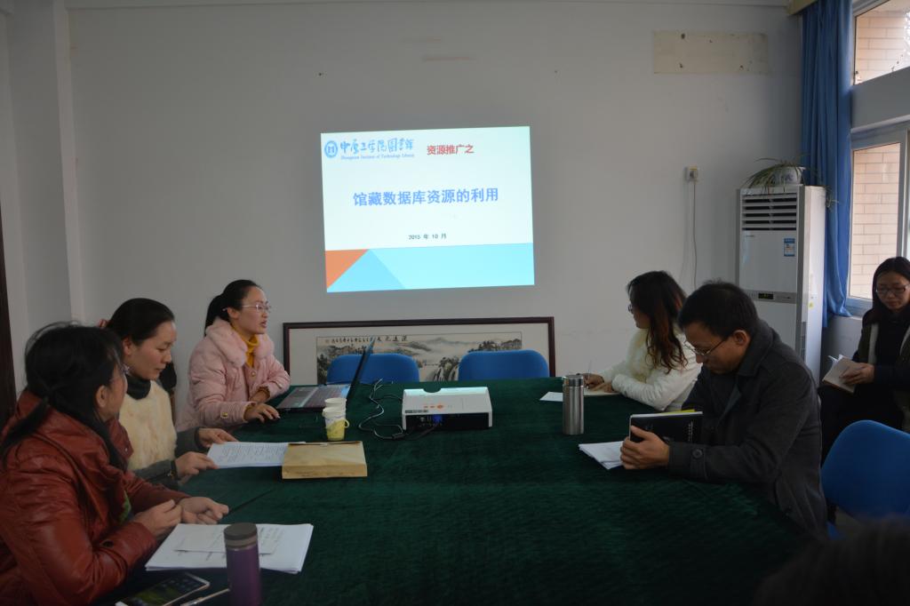 本场讲座过程中,图书馆教师介绍了我校馆藏数据库资源、外文数据库(爱思唯尔SD数据库、NSTL)的利用、超星数据库产品(读秀学术、百链云)及如何利用。我院教师咨询了他们在做科研过程中遇到的搜索资源技术性等问题,图书馆教师一一作了回答并教会教师在利用图书馆资源方面的一些技巧。本场讲座对我院教师以后做科学研究有很大帮助,使我院教师受益匪浅。