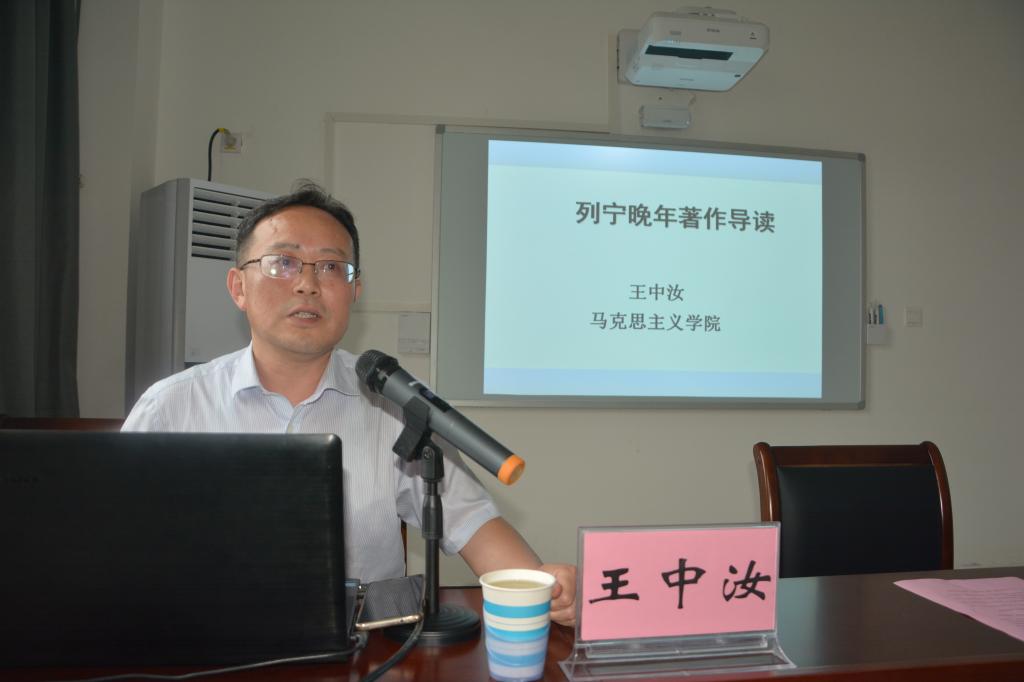 王中汝教授首先结合中共中央党校的课程设置,强调马克思主义原著教学的重要性,要用马克思主义的世界观和方法论教育学生,列出了学生必读的系列经典著作,分享了讲好原著的一些技巧:精心设计开场白、挖掘历史史料、协调好“背景、内容和启示”关系,等等,重点从经济思想、政治思想、文化思想以及与时代的融合方面来把握列宁晚年著作的要义。报告结束后,王教授与在场师生就项目申报、学术观点、人才培养等方面进行了交流。王教授的讲座理论联系实际,精彩生动,既激发了研究生学习原著的兴趣,也增强了老师们讲好原著的信心。