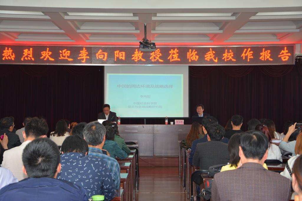 报告会上,李向阳教授从中国和平崛起的世界意义、特朗普政府的对外政策及对我周边环境的影响、中国周边环境评估和中国周边战略的选择等四个方面娓娓而谈,深入剖析了全球政治经济新格局以及中国崛起对美国地位的影响。李教授站位高、视野广,以渊博的知识、生动的语言和透彻的分析赢得了阵阵掌声,使我校师生对全球国际形势有了更深刻、更全面、更真实的了解,开阔了眼界,增强了社会责任感和大局意识。