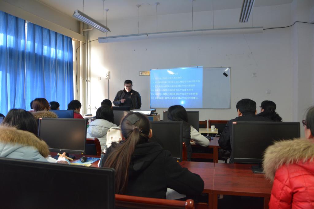 2016 1227日上午,洛阳师范学院刘高岑教授在南校区8号楼334教室为我校师生作了题为“郑洛新国家自主创新示范区背景下小微型企业创新创业平台研究”的专题讲座。