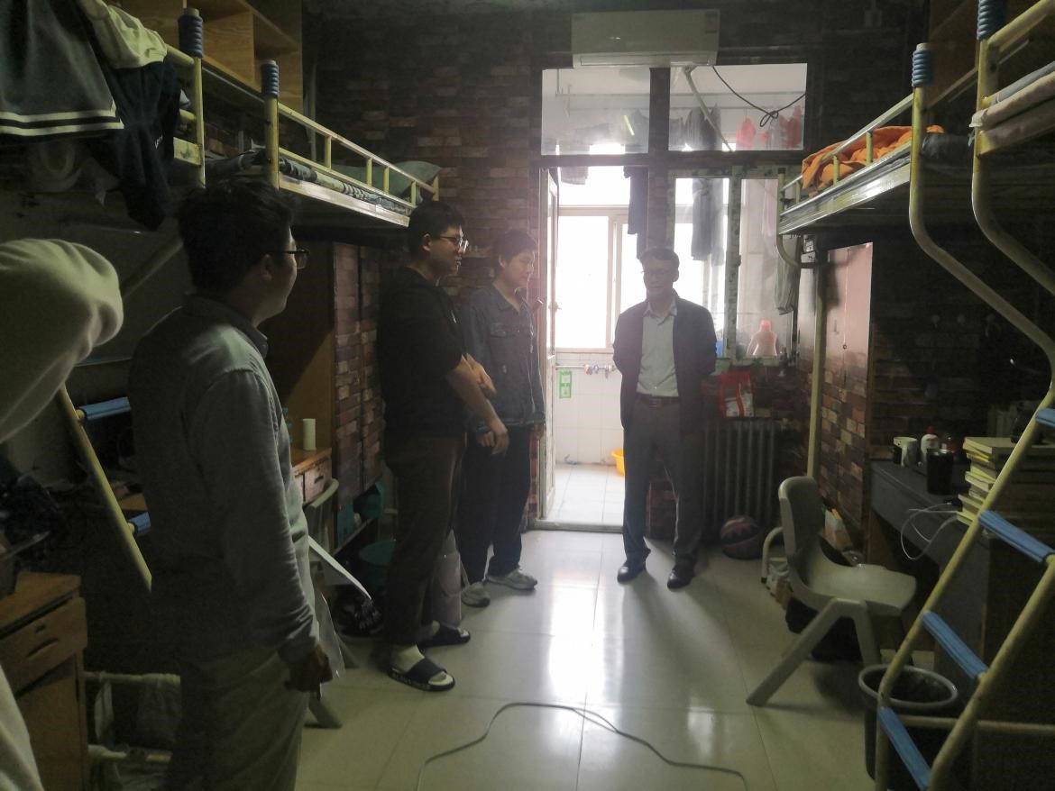会后,李明桂、袁秀梅深入研究生宿舍进行卫生安全检查,鼓励同学们营造积极向上、健康和谐的宿舍文化和干净整洁、安全有序的生活环境。