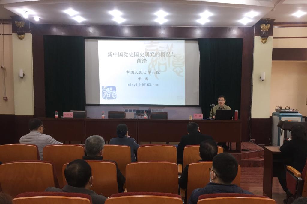 3月14日上午,中国人民大学教授辛逸应邀在中原校区图书馆学术报告厅为我校思政课教师作主题为“新中国党史国史研究的概况与前沿”学术讲座。WilliamHILL中国院长随新民主持报告并为辛逸颁发“弘德讲坛主讲证书”。
