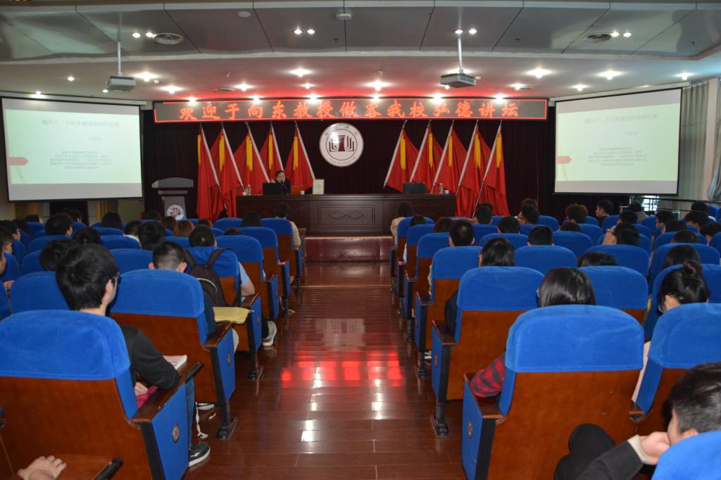 于教授的讲座深入浅出、理论结合实例,精彩生动,让听讲的师生获益良好。现场座无虚席,不时爆发出热烈掌声和会心的笑声。讲座结束后,于教授与在场师生进行了交流。赵茜副院长对于向东教授的精彩报告表示感谢,并为于教授颁发了我校“弘德讲坛”主讲证书。