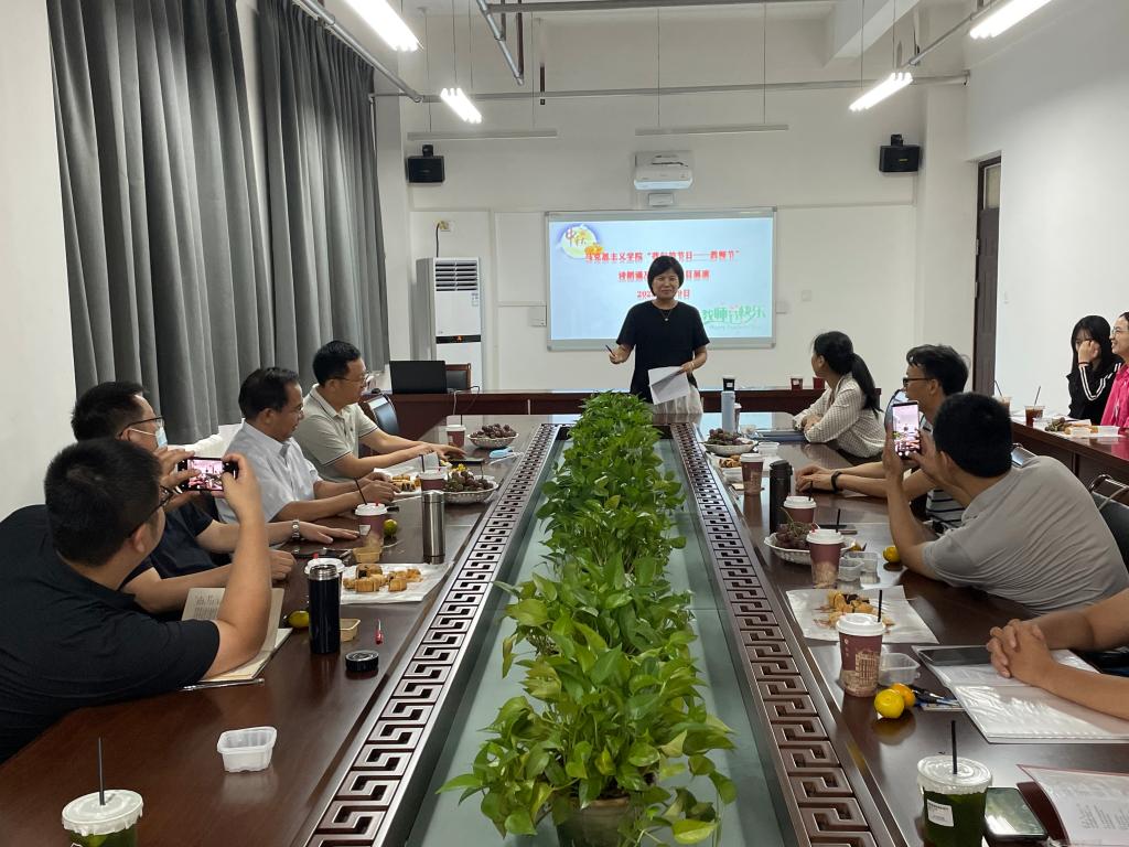 第三环节是语言类节目展演。师生们一边吃月饼、喝咖啡、品水果,一边进行成语接龙、绕口令、单口相声和中秋节民俗故事分享活动。 语言类节目展演有助于全院师生更好地传承中华优秀传统文化,增强了民族自尊心、自信心、自豪感,也使大家在马院这个大家庭中感受到了别样的欢乐、亲情和友爱,营造了温馨团圆的节日氛围。