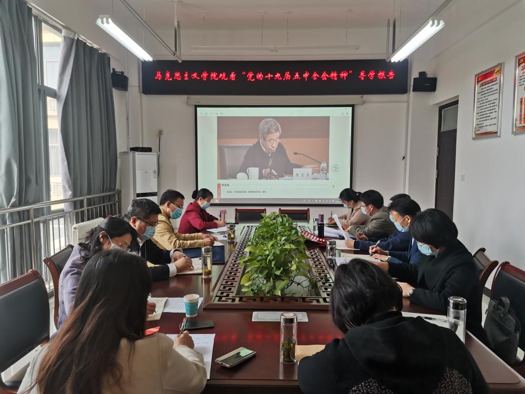 随新民院长指出,要深入学习贯彻党的十九届五中全会精神,推动会议精神进思政课堂往深里走、往实里走,积极组织开展思政课集体备课,上好党的十九届五中全会精神“思政大课”。随后,大家结合各自的工作谈了学习体会。