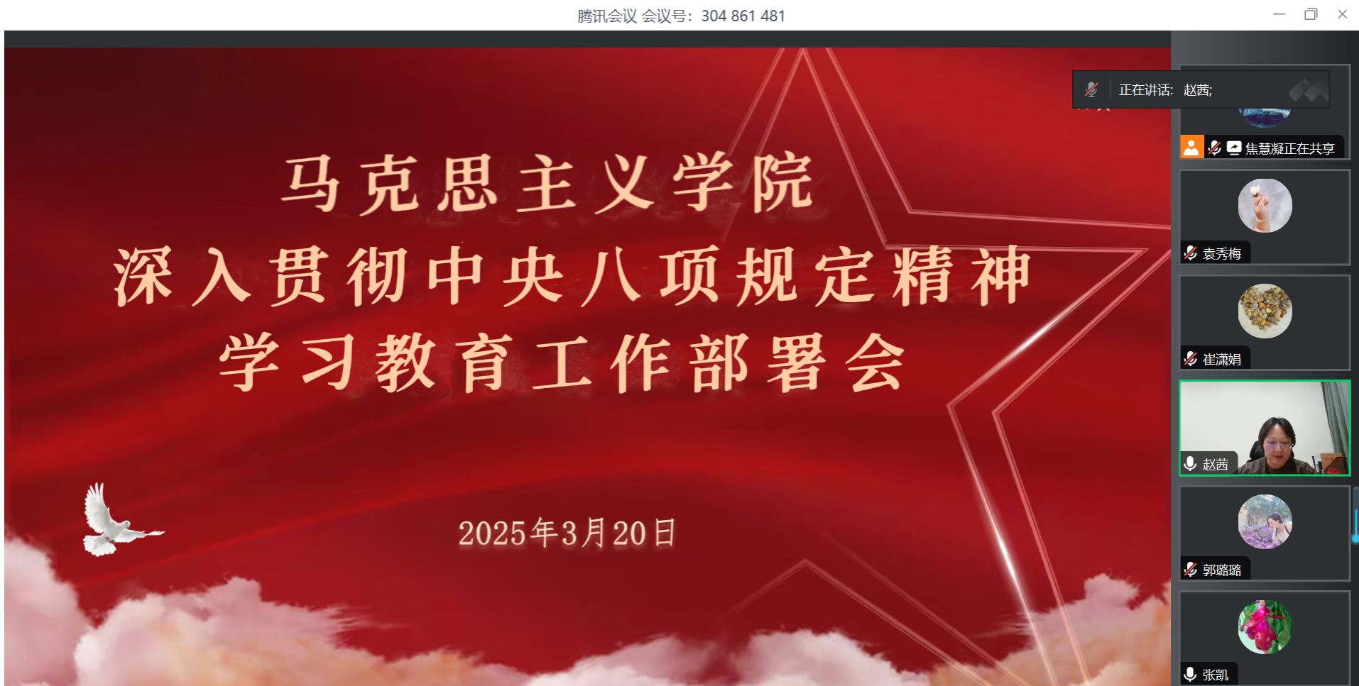 根据学校工作要求,3月20日,WilliamHILL中国党总支召开深入贯彻中央八项规定精神学习教育线上工作部署会。全体教工参加了会议。会议由院长张凯主持,党总支书记赵茜领学。